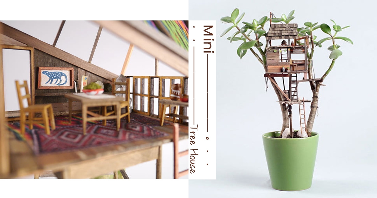 盆栽上「迷你樹屋」超精緻 傢俱超齊全「還鋪地毯」:這是小精靈的家嗎?