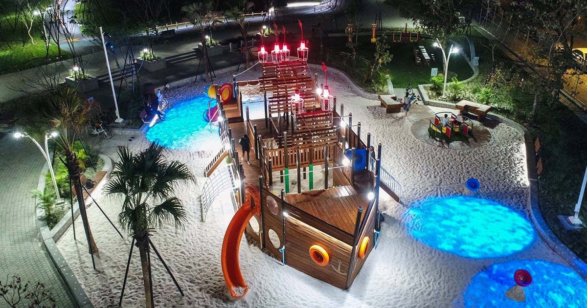 屏東新熱點又加一! 公園免費玩巨大海盜船、海灘風白砂