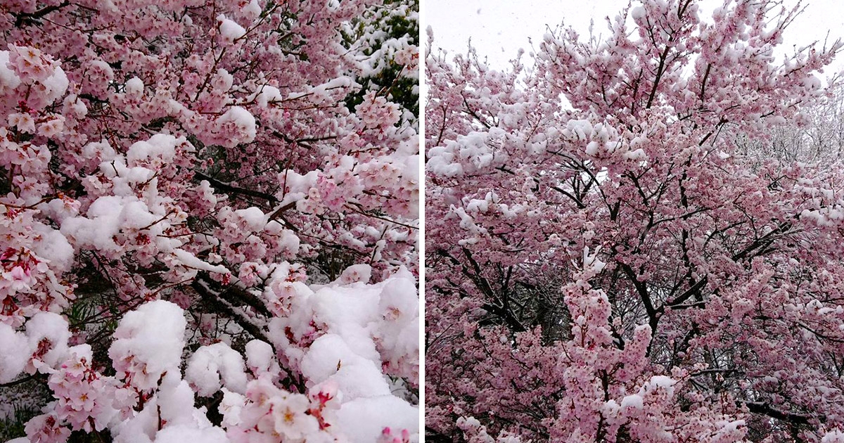 人生難得一遇! 賞櫻逢落雪「雪櫻夢幻奇景」日網瘋傳
