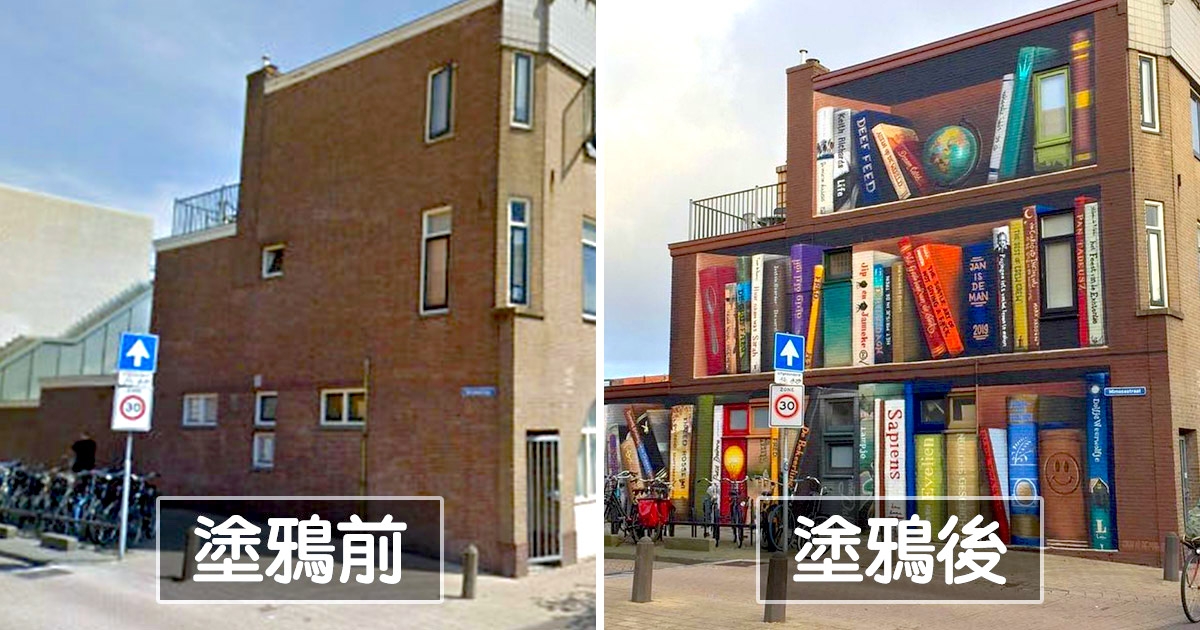 彩繪巨大書架讓老公寓重獲新生 路人走過「連書名都看到滿滿驚喜」