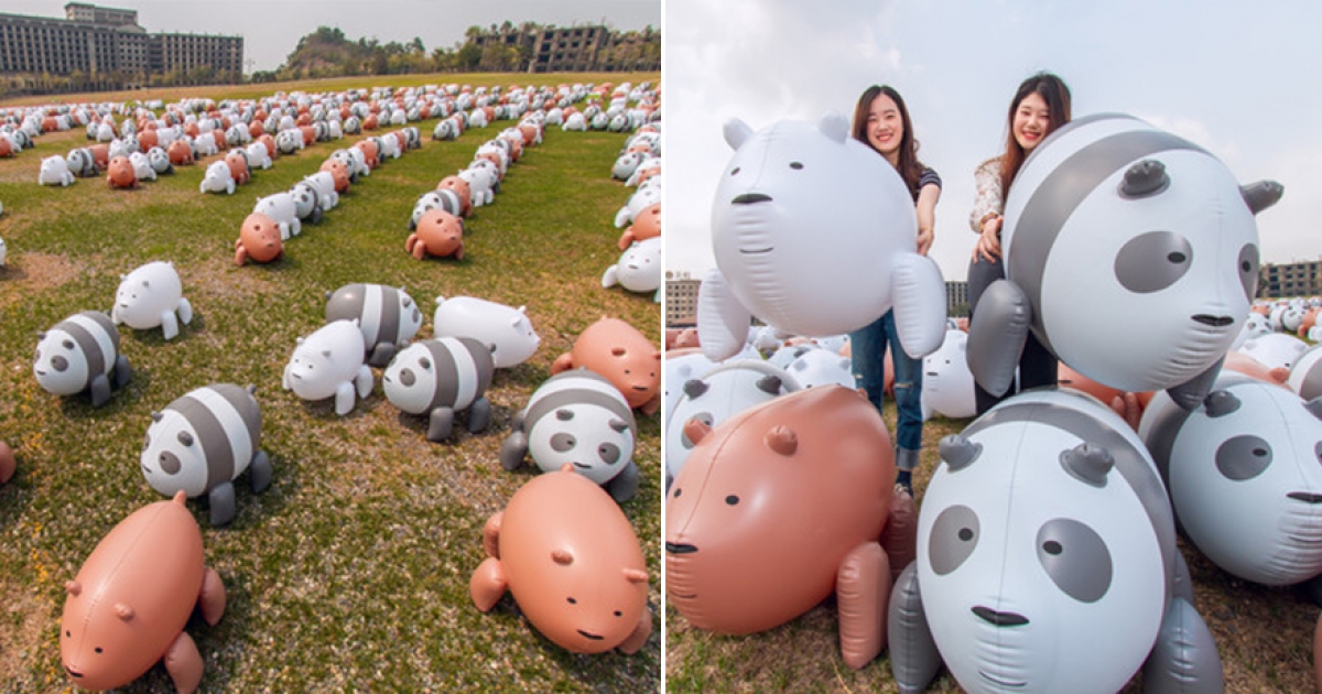熊熊遇見你出沒義大世界! 1001隻熊熊「霸佔草坪」被淹沒也願意~