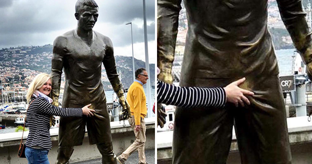 遊客與C羅雕像合照「必摸這裡」 4年下來竟被摸到開光了…