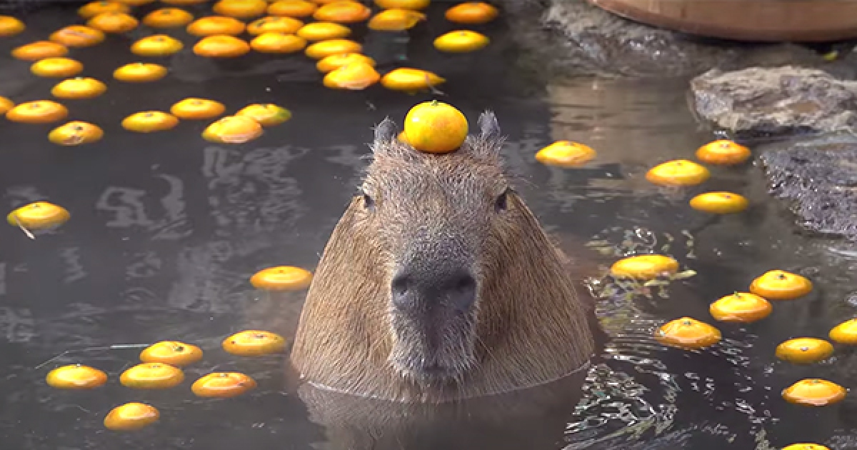 冬天就4要泡湯啊~ 日本限定活動「水豚頂橘子泡溫泉」 看到代表新的一年超幸運
