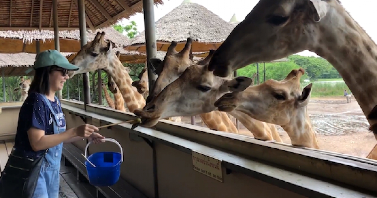 來泰國體驗「被100隻長頸鹿包圍」 零距離搶食萌翻